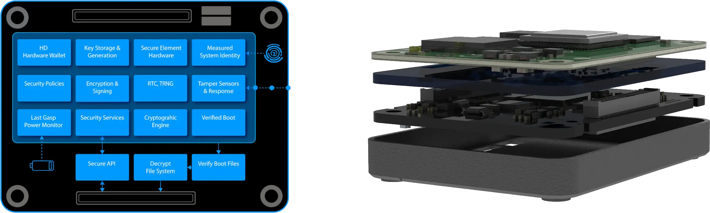 The Secured Compute Module (SCM4) offers several advantages that make it a compelling choice for secure computing applications. Many features - including private key storage, cryptography acceleration, and physical tamper response - have significant relevance within the ZKNetwork both as an end-user device for accessing the network as well as DePIN deployments of devices within Zero-Trust environments. Together, these elements ensure the device, and thus private network connection, remains secured at all times including from potential adversaries with physical access.